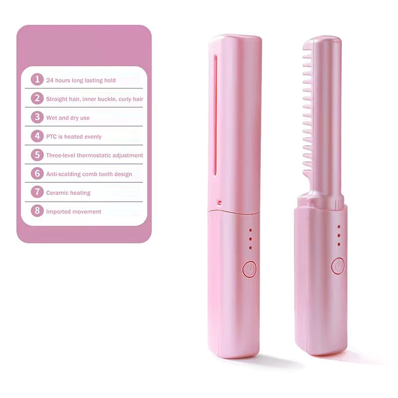 Peine eléctrico para cabello liso 2 en 1, versión mejorada que funciona como alisador y rizador inalámbrico con carga USB.